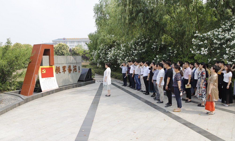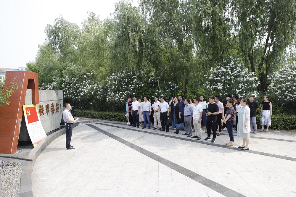 本次现场教学活动在海洋路校区铁军艺苑和校史馆举行,鲁迅艺术学院副院长、华中鲁艺研究所副所长陈德田担任本次现场教学的主讲。他以详实的史料,深情的口吻向大家介绍了新四军N4A”标识的由来,华中鲁艺成立的历史背景、构设置、办学情况及刘少奇、陈毅等老一辈革命家的丰功伟绩。期间,穿插介绍了荡气回肠的九女投河的英雄事迹,邱东平、许幸之、莫朴、贺禄汀等艺术大家创作成就。通过现场教学,在场的全体党员干部深刻认识了华中鲁艺短暂而辉煌的办学历史,在吸引进步青年走上革命和抗日道路,传播新思想、新文化,推动苏北盐阜地区文化发展,培养军队和基层文艺骨干方面所发挥的巨大作用。在铁军艺苑入口处,全体参加活动的党员还一起重温入党誓词。