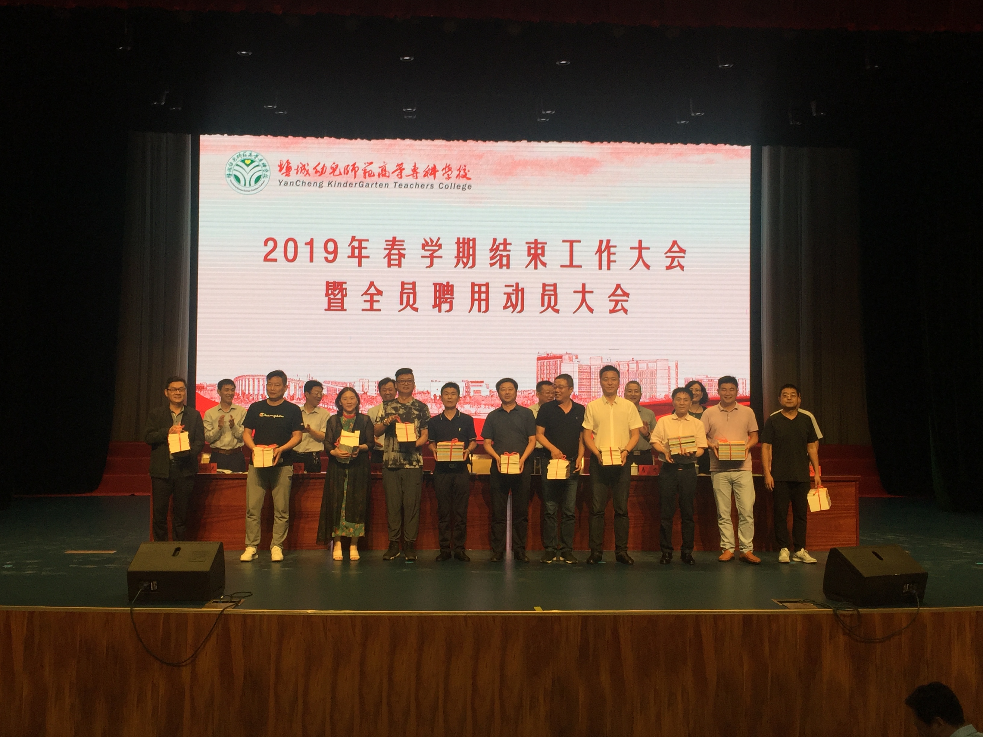 7月8日下午,我校在海洋路校区鲁艺剧场举行学期工作结束会,会议期间,学校班子成员集体向各二级党组织负责人发放第五批全国干部学习培训教材。