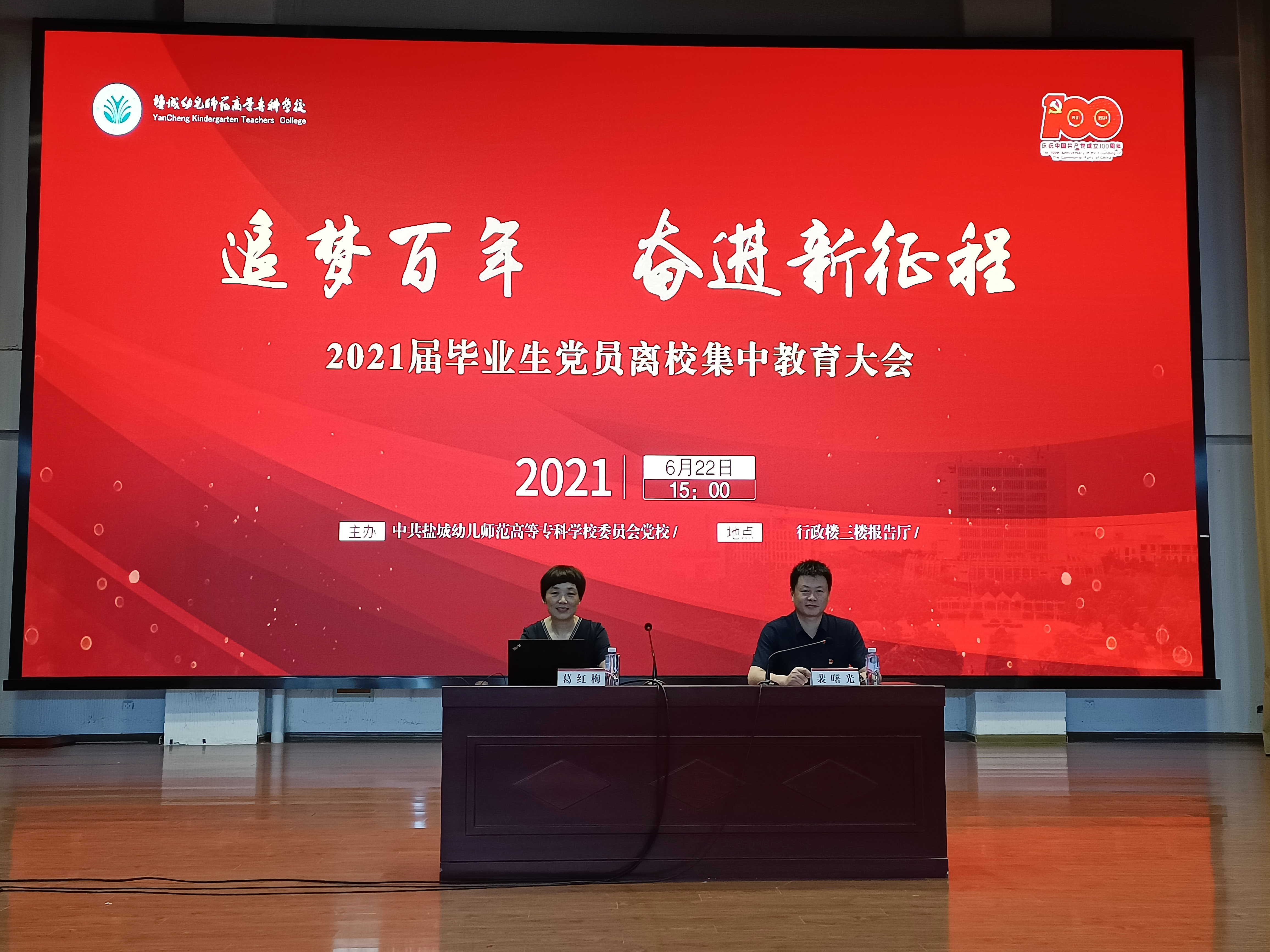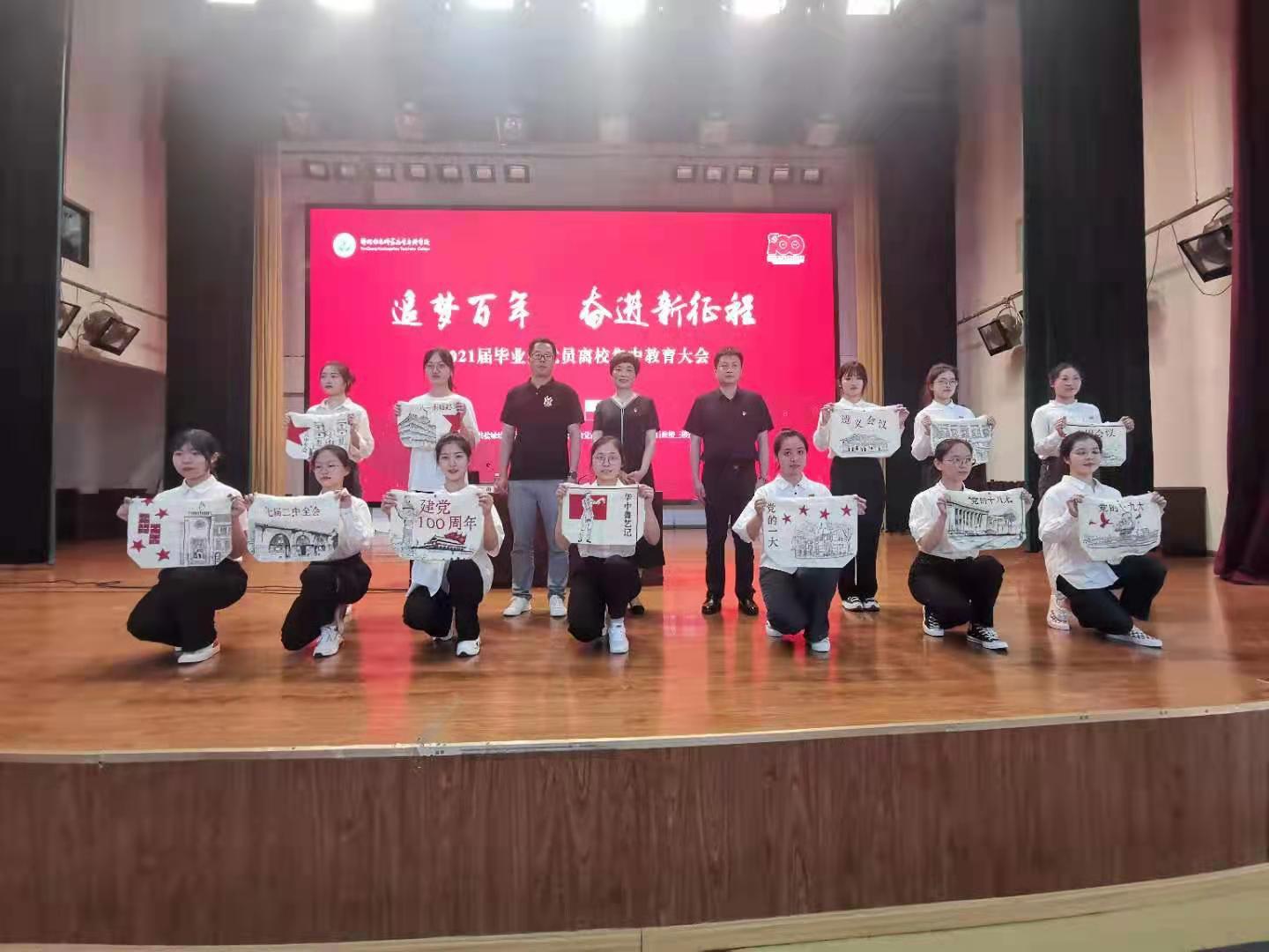 为了做好2021届毕业生党员离校前的有关工作,强化毕业生党员党性意识和组织观念,加强对毕业生党员的信仰教育,6月22日下午,盐城幼儿师范高等专科学校以“追梦百年 奋进新征程”为主题,组织开展了毕业生党员离校集中教育活动。学校党委委员、党委宣传部部长葛红梅、各二级学院党总支书记、党委组织部副部长唐晓红和全体毕业生党员参加了大会。大会由党委组织部部长裴曙光主持。