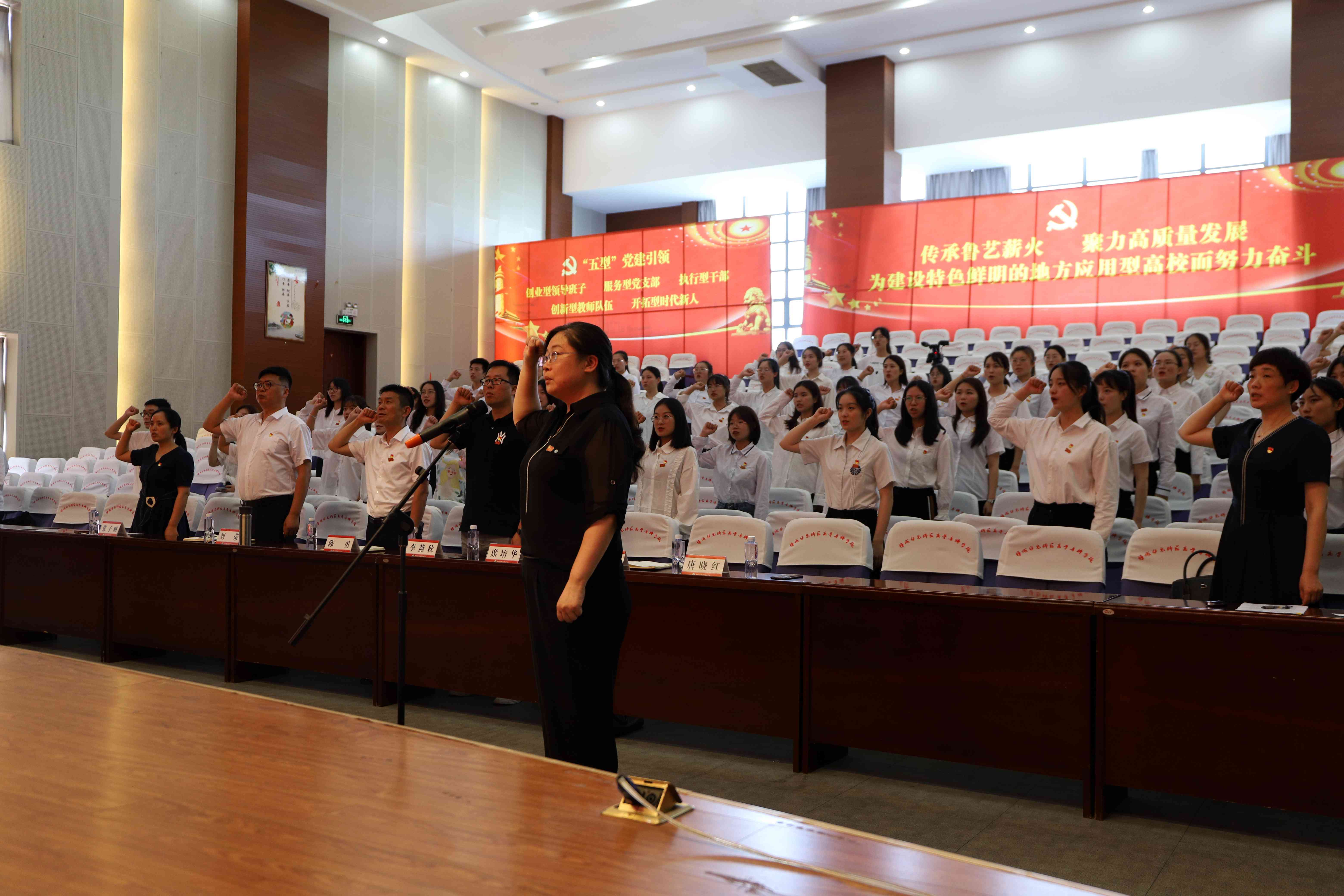 大会在庄严雄伟的国歌声中拉开了序幕。随后,党委组织部副部长唐晓红带领全体毕业生党员重温入党誓词。全体党员面向党旗,庄严地举起右拳,“我志愿加入中国共产党 ,拥护党的纲领,遵守党的章程,履行党员义务……”铮铮誓言,神圣而豪迈,让党员们再一次感受党的神圣光辉,更加坚定入党信念和为共产主义事业奋斗终生的决心。