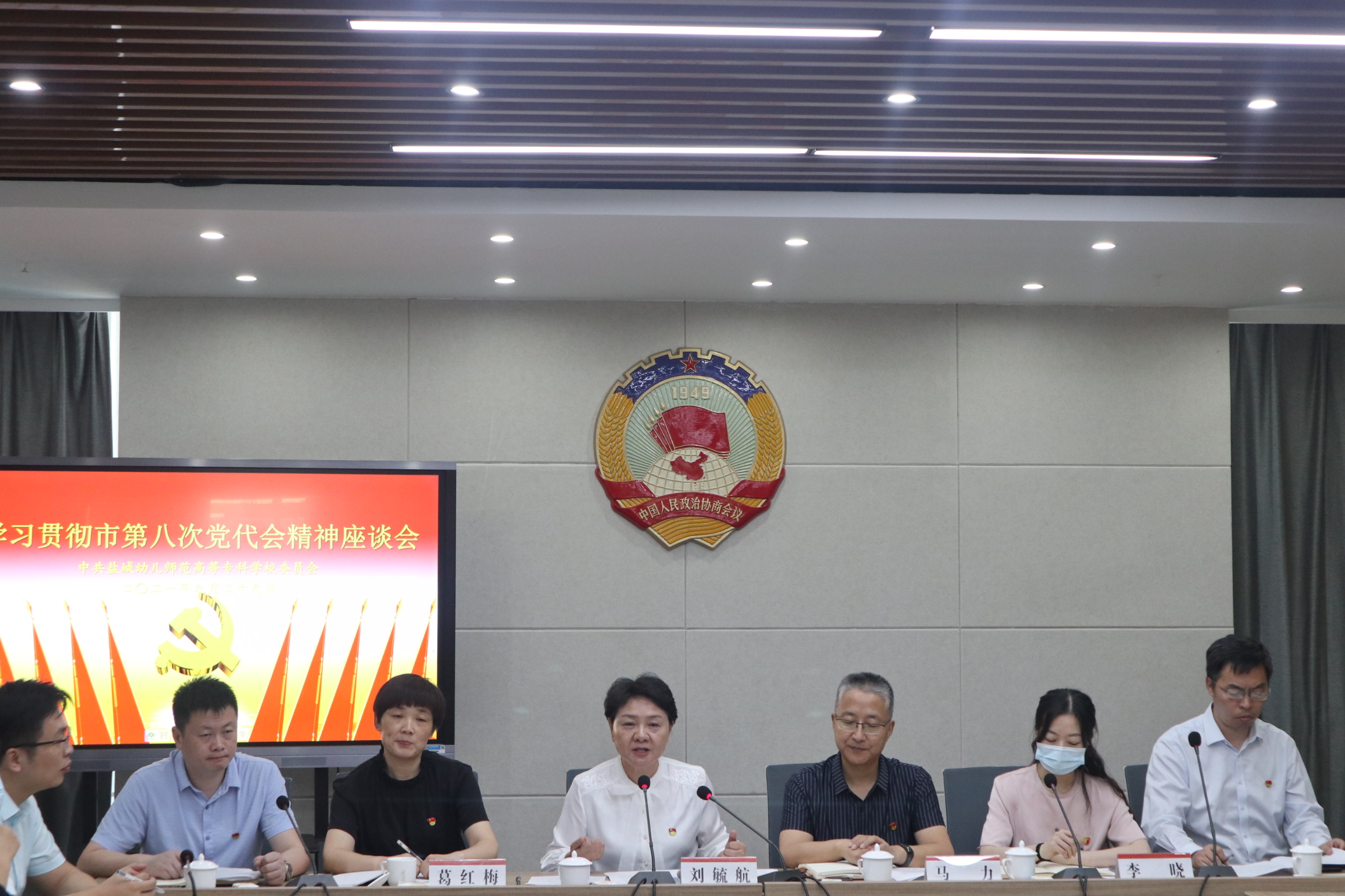 9月29日下午,我校召开学习贯彻市第八次党代会精神座谈会,传达学习市第八次党代会精神。学校党委书记刘毓航,党委委员、纪委书记马力,党委委员、宣传部部长葛红梅出席会议,党委工作部门、团委、工会等职能部门的负责人,市第八次党代会代表李晓老师和新教师党员代表们参加了此次座谈会,座谈会由马力主持。
