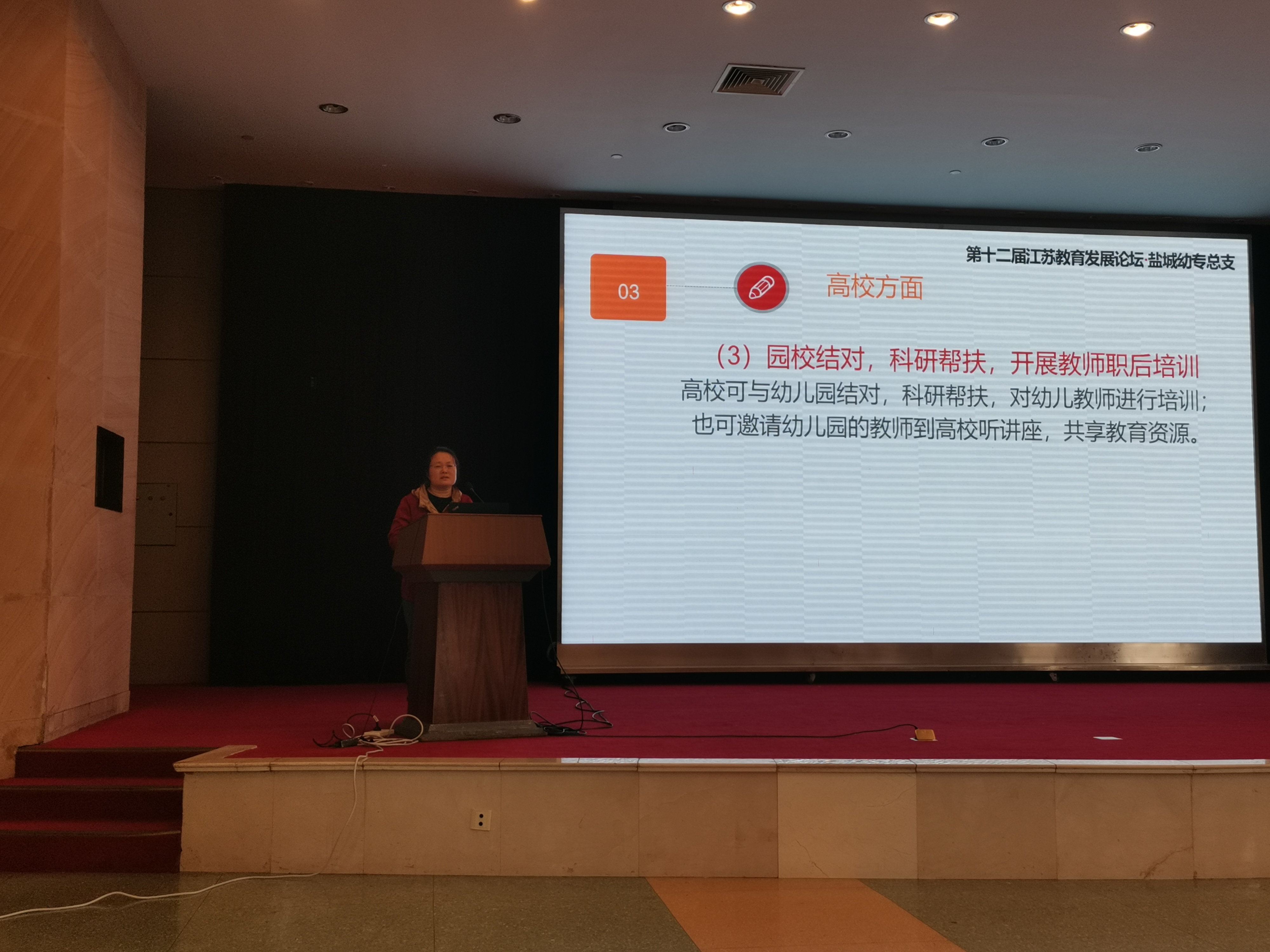 2021年10月29日,由民盟江苏省委主办的以“教育供给侧结构性改革——教师篇”为主题的第十二届江苏教育发展论坛在南京举行。民盟盐城幼专总支杨翠娟老师代表获奖作者参加大会,并做大会交流发言。
