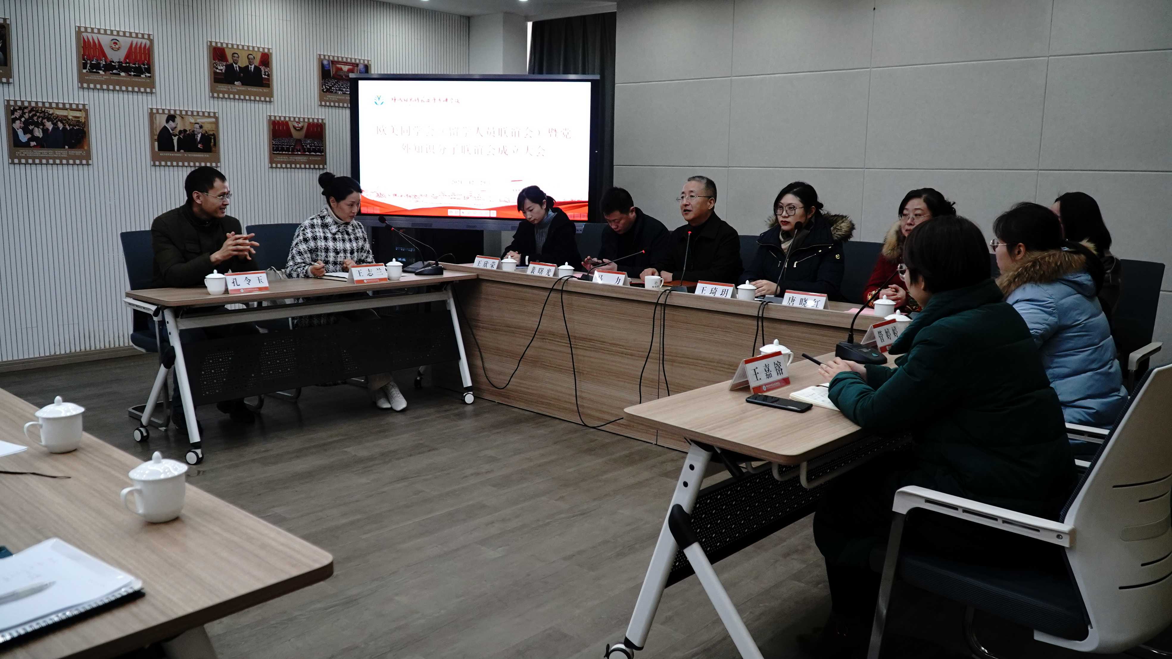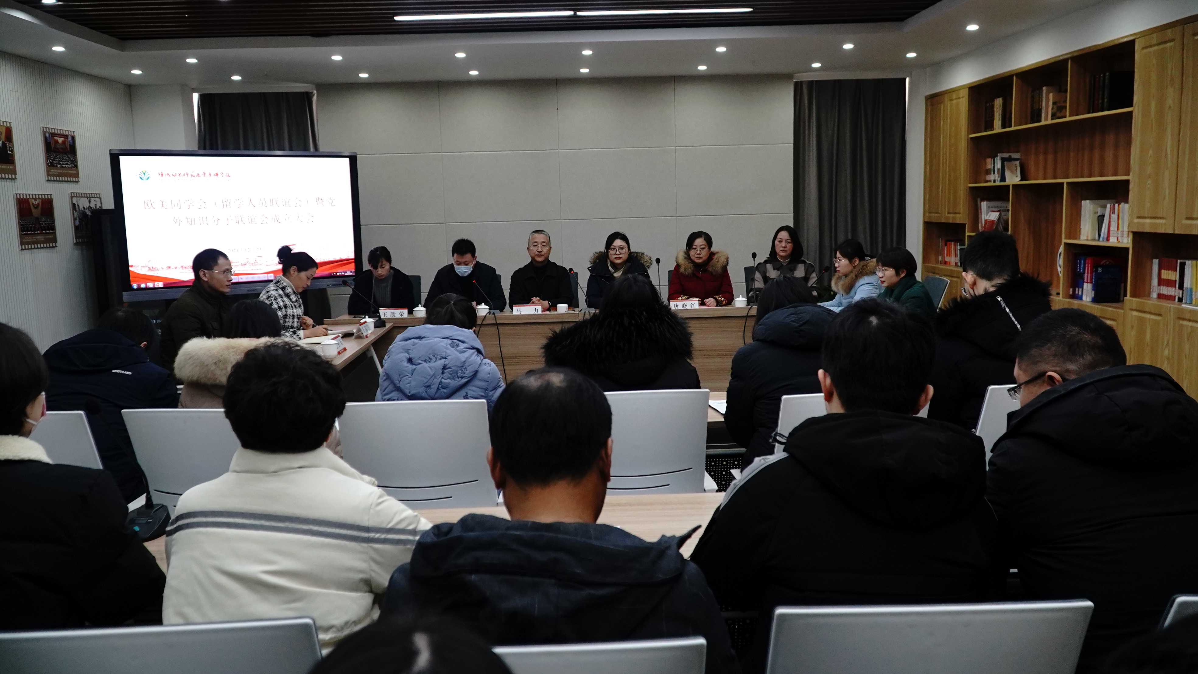 12月29日下午,我校在海洋路校区“鹤鸣书苑”同心教育实践基地召开欧美同学会(留学人员联谊会)暨党外知识分子联谊会成立大会。校党委委员、纪委书记马力,市欧美同学会秘书长王琦玥,校党委统战部(组织部)部长裴曙光、党委组织部副部长唐晓红出席会议。联谊会全体会员、民主党派基层组织代表及党委统战部全体工作人员参加会议。会议由裴曙光主持。