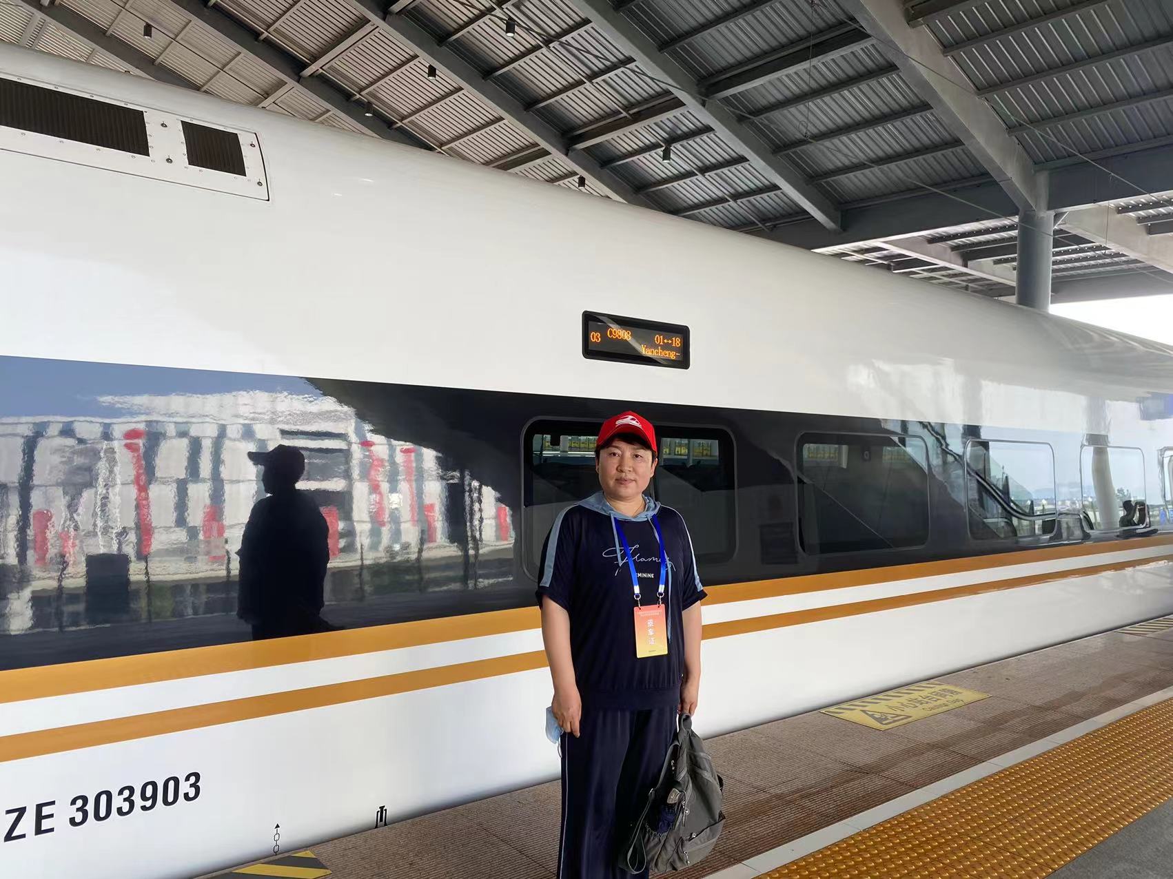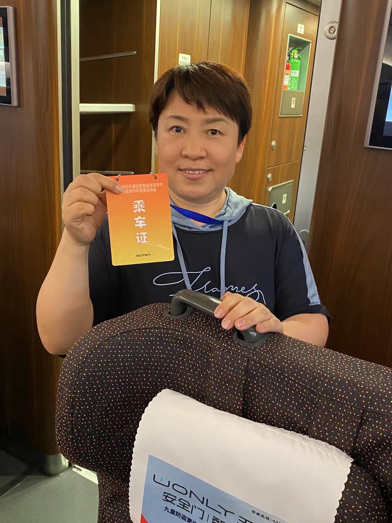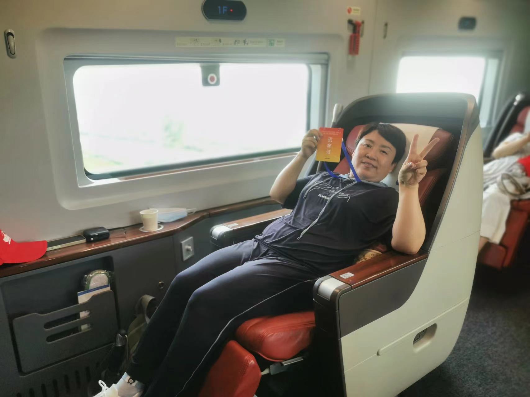 上午8点58分,王主委跟参加活动的市党代表、政协委员、人大代表、劳模代表、抗疫先进代表和媒体记者一起,乘坐C9808城际列车从盐城站出发,11点多到达南京南站,下午4:26乘坐D5527次动车返回盐城。王主委在列车上体验了商务车厢和普通车厢。