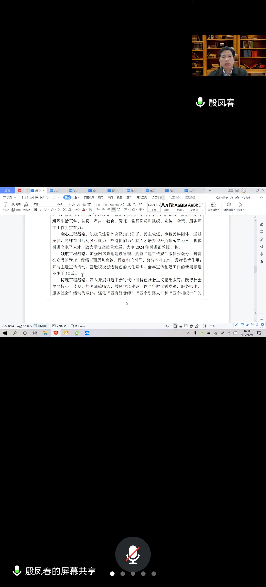 盐城师范学院商学院殷凤春院长为我校开展第二批党建“双创”工作申报专题线上辅导