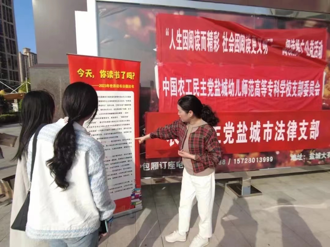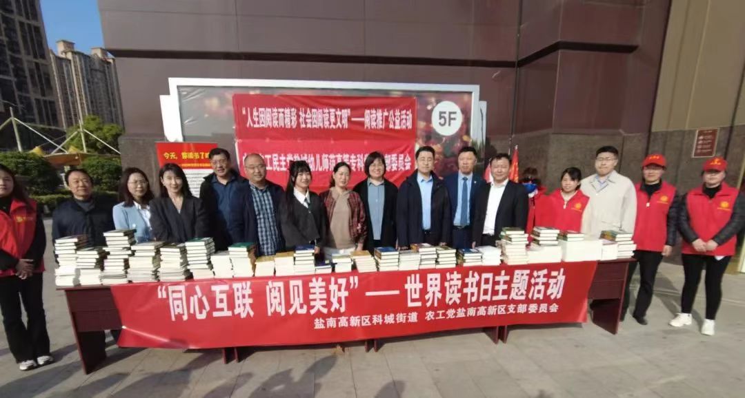 在第28个“世界读书日”到来之际,我校农工支部、农工盐南高新区支部、农工盐城同洲集团支部、农工法律支部、农工经济二支部走进盐南高新区科城街道,联合开展“人生因阅读而精彩 社会因阅读更文明”阅读推广公益活动,引领多读书、读好书的社会文明风尚,营造全民阅读书的浓厚氛围。