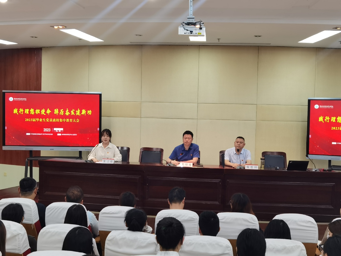 为做好2023届毕业生党员离校前的有关工作,强化毕业生党员理想信念教育,提升党性修养,增强爱党爱国爱校情怀,6月19日下午,学校以“践行理想担使命 踔厉奋发建新功”为主题,组织开展了2023届毕业生党员离校集中教育活动。学校党委委员、组织部部长裴曙光、鲁迅艺术学院党总支书记陈德田、各二级学院学工党支部书记、党委组织部全体人员和全体毕业生党员参加了大会。大会由裴曙光主持。