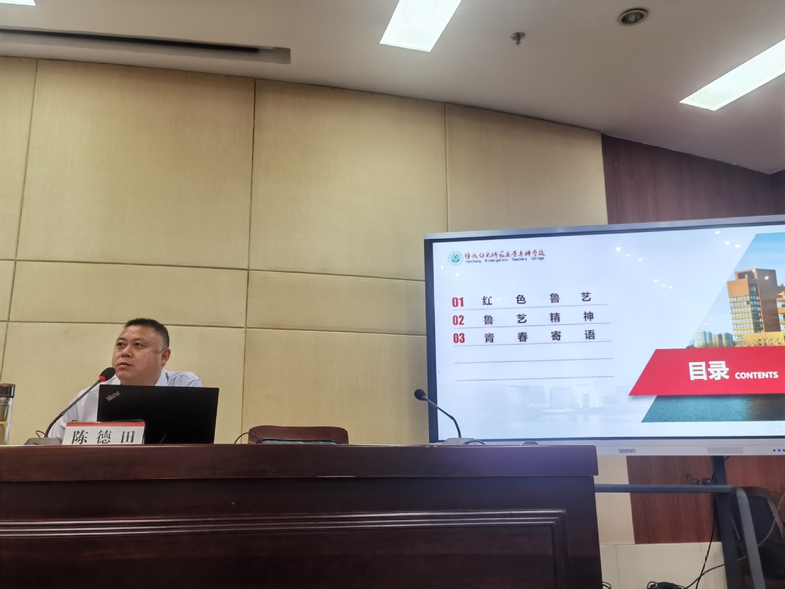 陈德田以《用鲁艺精神照亮青春之路》为题给全体毕业生党员上了一节生动鲜活的党课。他通过一帧帧历史画面,一件件温情往事,一幕幕激情岁月,带领全体毕业生党员了解了红色鲁艺,重温了鲁艺精神,感知了鲁艺的革命历史与盐城幼专接续的血脉传承,希望大家能够传承红色基因,践行鲁艺精神,用鲁艺精神照亮青春之路。