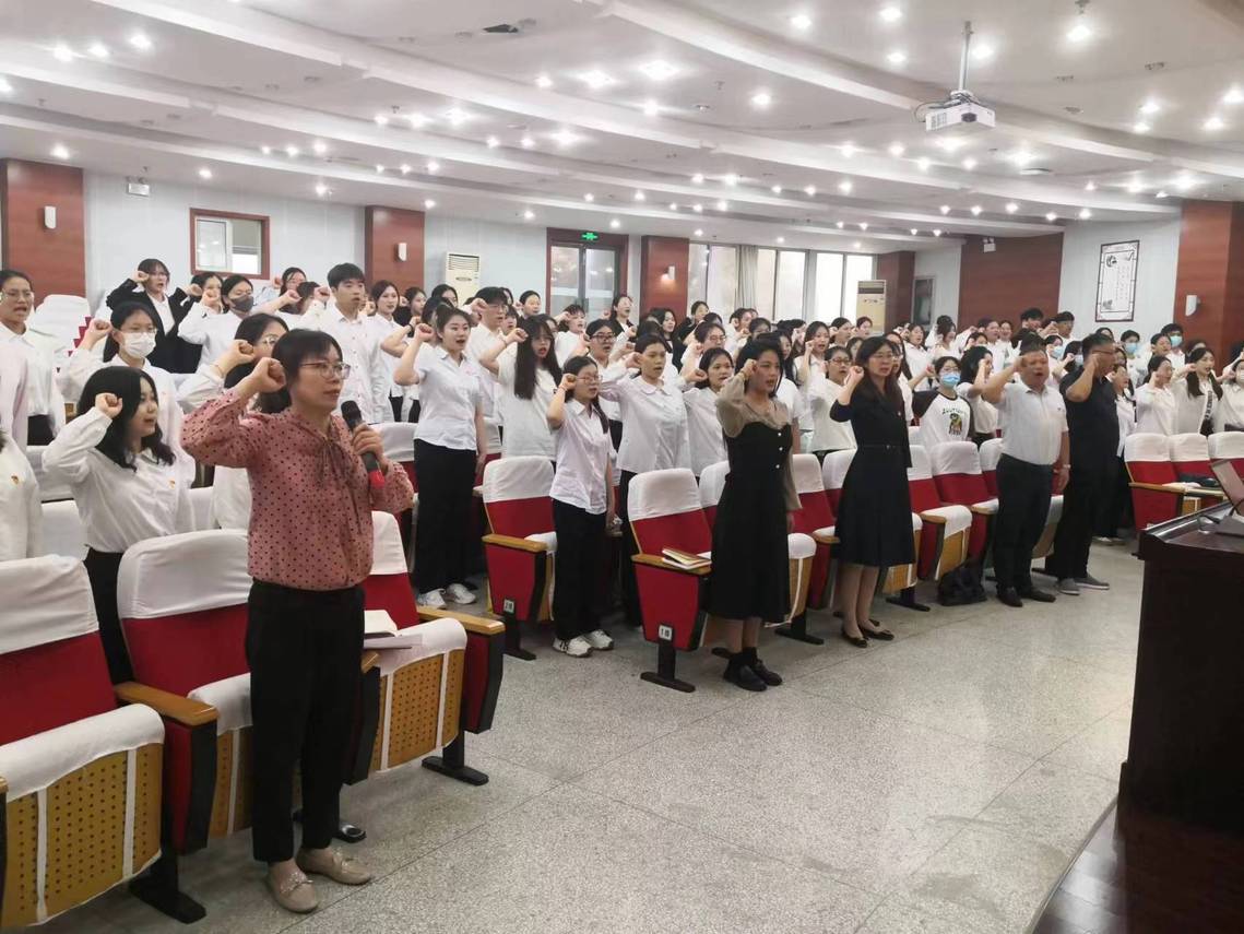 活动在庄严雄伟的国歌声中启幕,党委组织部组织科于雯科长带领全体毕业生党员重温入党誓词。全体党员面向党旗,庄严地举起右拳,“我志愿加入中国共产党 ,拥护党的纲领,遵守党的章程,履行党员义务……”铮铮誓言,神圣而豪迈,让党员们再一次感受党的神圣光辉,更加坚定入党信念和为共产主义事业奋斗终生的决心。