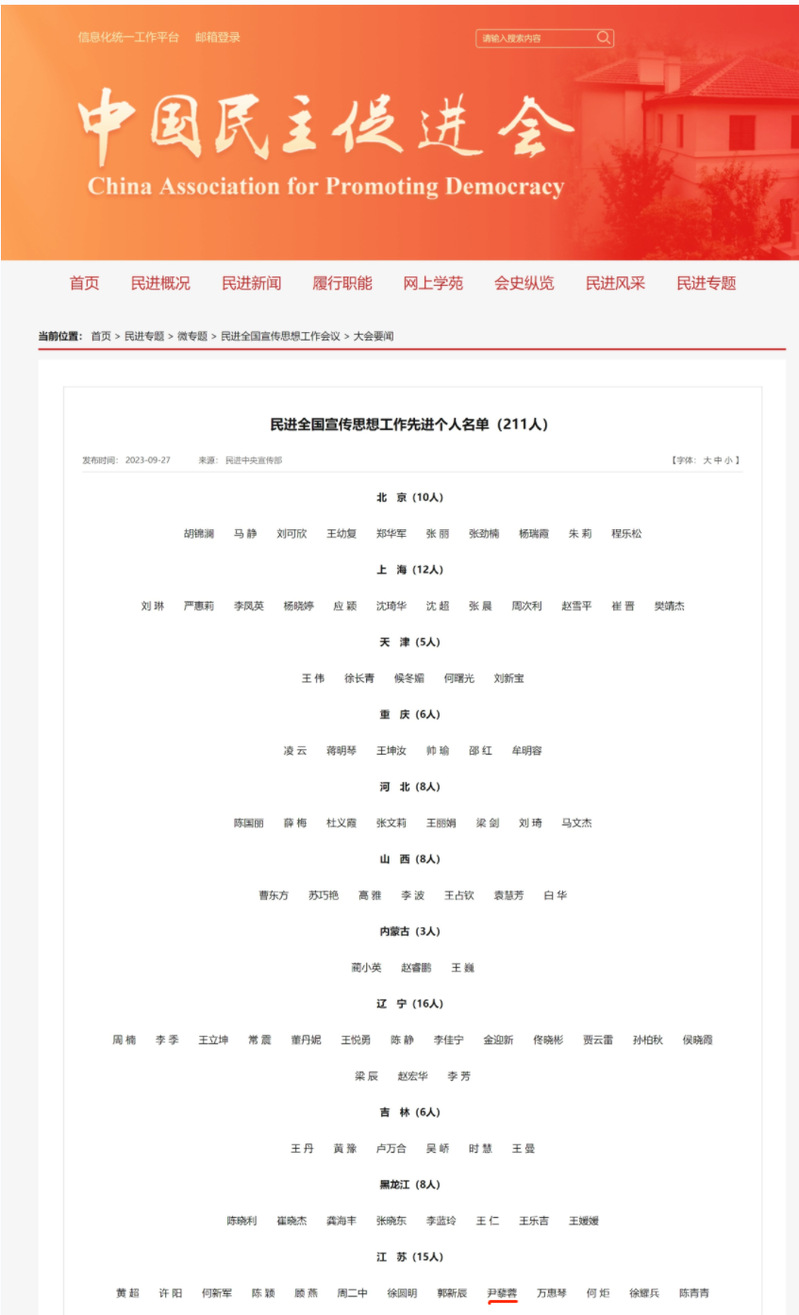 喜报!我校尹藜蓉老师荣获 “民进全国宣传思想工作先进个人”荣誉称号